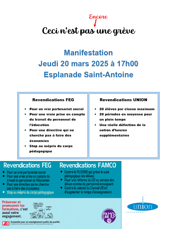 • Contre la volonté du Conseil d’Etat d’augmenter le temps d’enseignement.