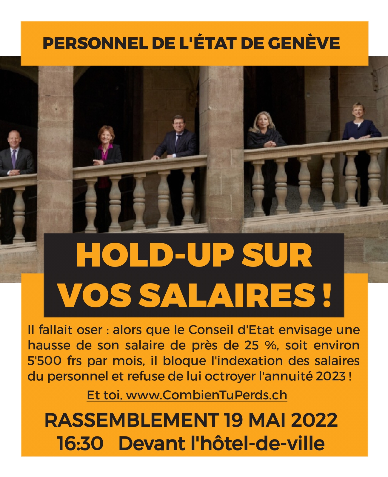 qu’il s’engage à tenir compte de l’augmentation du coût de la vie et donc à indexer les salaires en conséquence (+ 2% attendu pour 2022) et à rattraper la totalité du renchérissement 2021 (+ 0.9%)